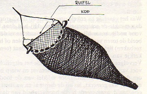 Van onder de plecht werden nu manden, emmers, houten schoppen en zeven gehaald. Er was een grove z.g.n. krabbenzift, een vijfcentszift en een viercentszift. De wijdte bepaalde men met 4 of 5 op elkaar gelegde centen.