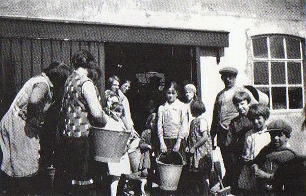 Bij hoog water werd via een buis zeewater in de spoelbakken gepompt waarin de gepelde garnalen werden gespoeld.