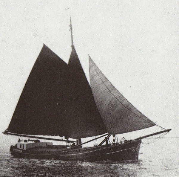Op deze foto het schip Broedertrouw. Het is niet bekend wat voor gezelschap hier aan boord is.