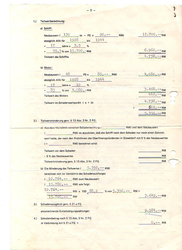 Piet van Beveren heeft later gebruik gemaakt van de mogelijkheid om een schadevergoeding in te dienen bij de Duitse overheid. Op 24 maart 1954 is zijn verzoek in behandeling genomen. Op 19 november 1973 kwam er "ein Bescheid". Na vier pagina's met getallen stond op het laatste blad het eindbedrag: 0 Reichsmark. Het begeleidend schrijven, ondertekend: Hochachtungsvoll, Im Auftrag Herr Heithölten.