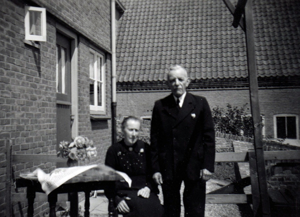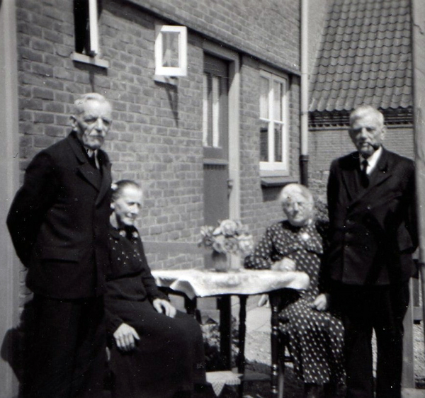 Foto's genomen achter het huis t.g.v. het 45-jarige huwelijk in 1949.